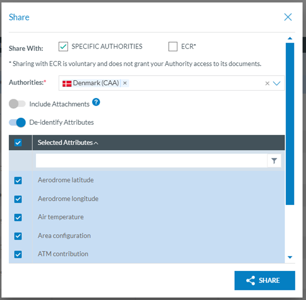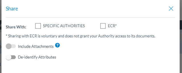 The information shared with other Authorities can be limited by selecting deidentified attributes. When the OC is shared with other Authorities, the value of the deidentified attributes is not shown when the other Authorities view the OC.