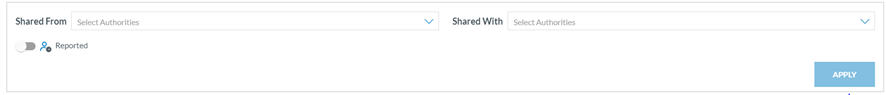 The quick filter for shared elements allows the Officer to filter on Occurrences shared by the Officer’s Authority to other specific Authorities and to filter on Occurrences shared by specific other Authorities to the Officer’s Authority.