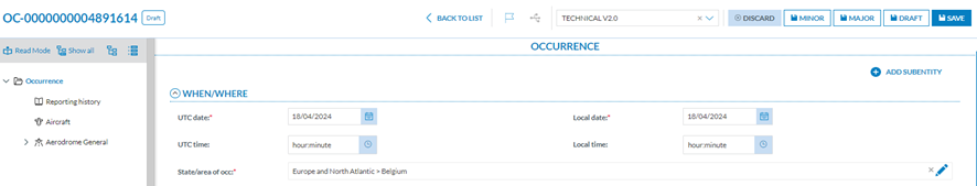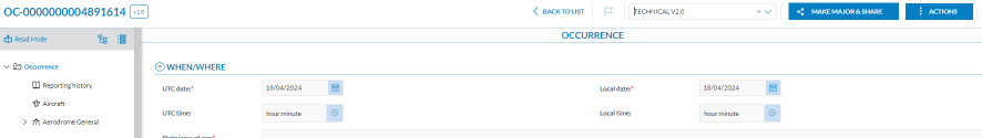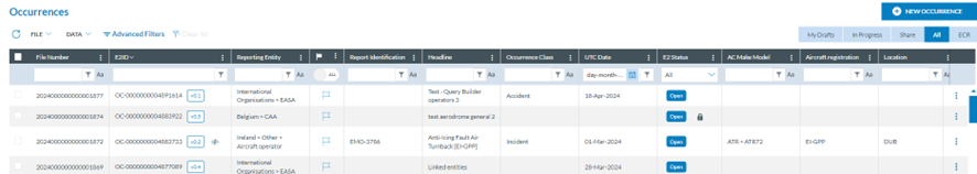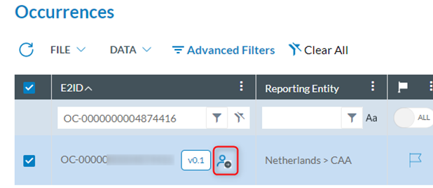 An occurrence (OC) can be constituted by one or multiple VRs from different reporters reporting the same safety event. The Authority Officers can share occurrences. An OC is a report of a safety event reported by one or multiple reporters through the E2 Reporting portal.