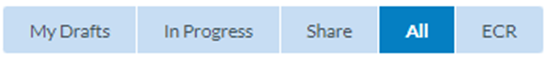 The filters provided by the system vary depending on the selected tab. When the Officer selects ‘My Drafts’ or ‘In Progress’, the system shows the following filters: