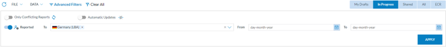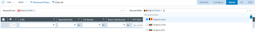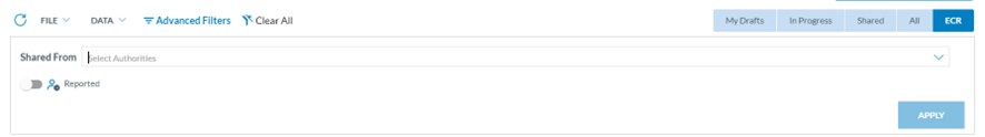 When the Officer clicks on the ‘ECR’ tab and then on ‘Advanced filters’, the system displays the "Shared From" filter.