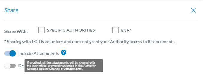ü If enabled, all the attachments will be shared with the Authorities previously selected in the Authority Settings option ‘Sharing of Attachments.’