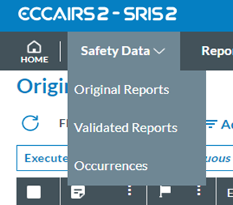 To manage them, the Officer accesses the E2 Web Application and unfolds the Safety Data menu on the left: