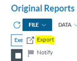 · Export in bulk: The export option can be performed by selecting multiple reports on the list and clicking the File drop-down menu above the list of reports.