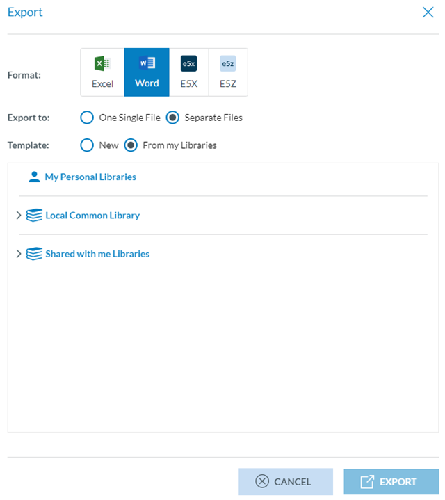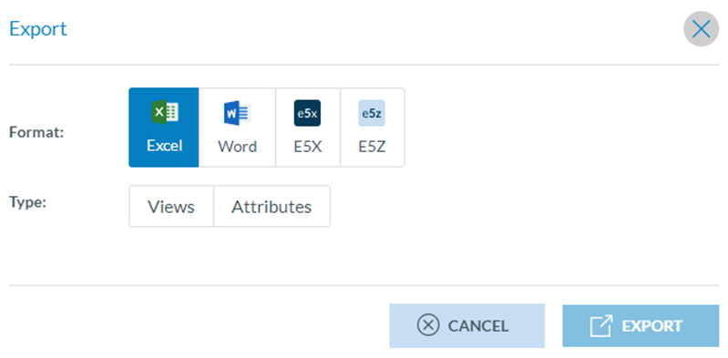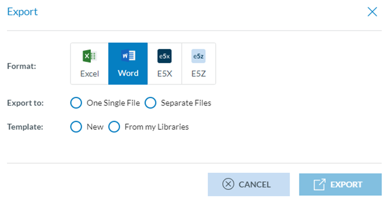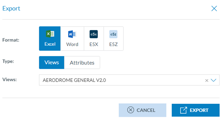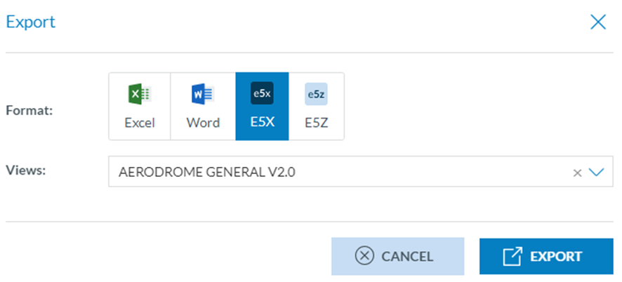 The Officer can select the format (Excel, Word, E5X, E5Z).