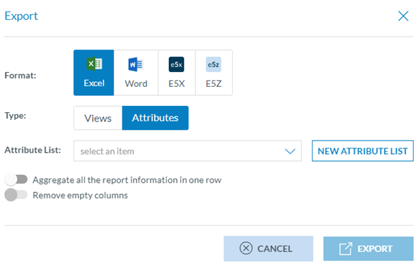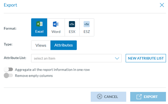 An Attribute List is an export profile available for the Officer, where they can save their export preferences. They can create one on the fly if no Attribute List item is available.