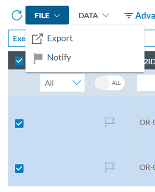 Or by checking the specific reports of the list, clicking on the File menu above the list of ORs, VRs or OCs and then clicking on ‘Notify’: