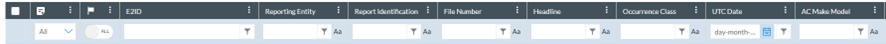 Below each column, there is a drop-down menu through which the Officer can filter the data for the specific column:
