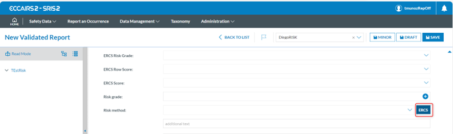 The Officer has to click on the ERCS button located in the view, next to the 'Risk Management' topic, i.e.: