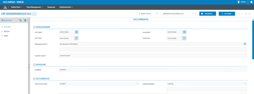 File Number is an attribute of the ECCAIRS taxonomy (452) that identifies the report (OR, VR or OC) the Officer is saving. It is unique per type of object and Authority. The pattern used to define the file number is determined at the Authority level.