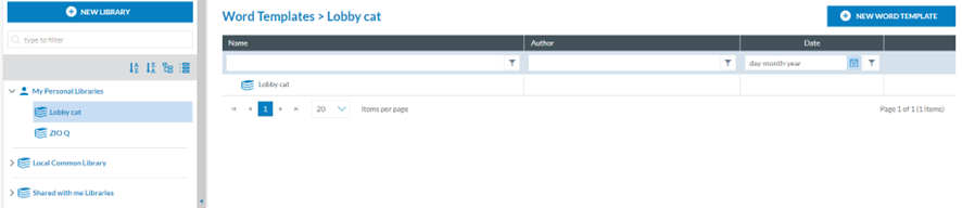 The Administrator can create a Word Template (from now on WT) within ‘My Personal Libraries’ and ‘The Local Common Library’.