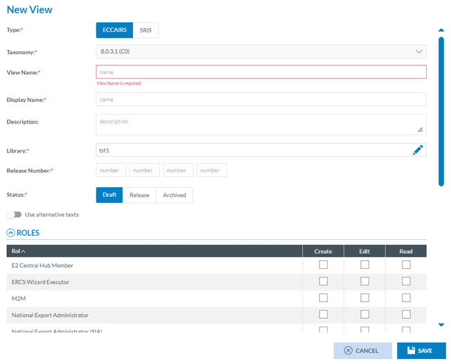 The Administrator has to click on the specific folder of the desired Library where to store the new view, click on ‘New View’ above the table of views, and the system will open the ‘New View’ page: