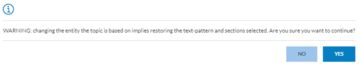 After selecting it, the system will display the topic, and the chosen elements in the pattern composer will be available, so when filling them in, the topic's name will be added to the element information. i.e.: