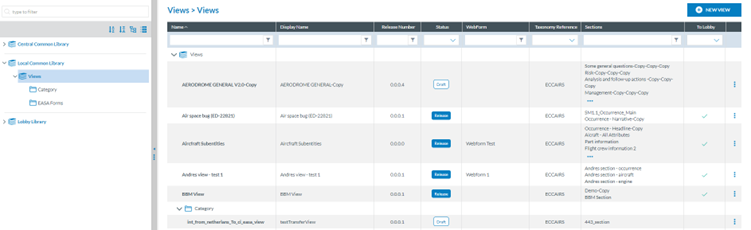 The Central Common Library: it is an EASA ECCAIRS level library. The Authority’s Administrator cannot add views to this library, edit or delete them; only preview and copy them and view their properties.
