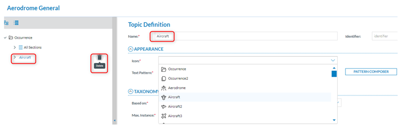 The topic will provide a Delete icon next to it. At the same time, the Topic Definition page will bring the created topic to the Name field (See image above).