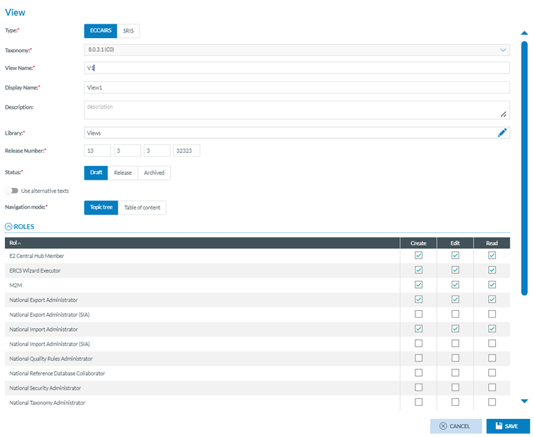 · The type is ECCAIRS or SRIS, depending on the Taxonomy under which the View is built.