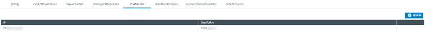 Administrators must fill in at least the IP address in the IP column and click the ‘Save’ icon. The system will save the data in the database, and the new whitelisted IP is created.