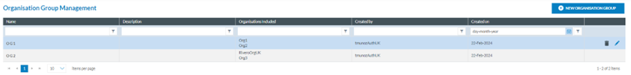 · Organisation Group: drop-down menu providing the organisation groups to be selected, if any