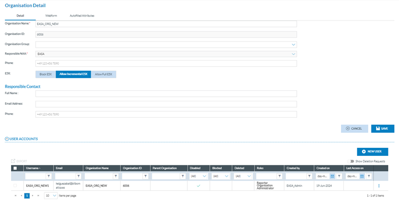 · Responsible NAA: the system sets the Authority to which the Administrator belongs. By default, it is not editable.