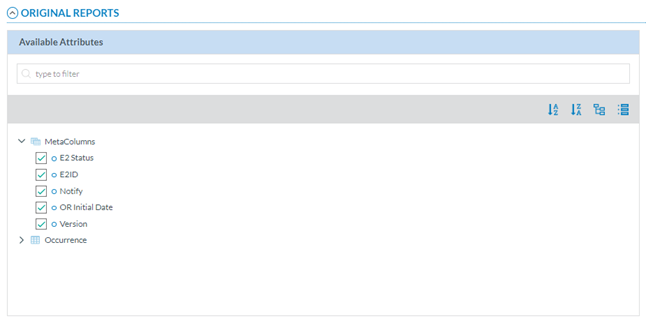 The right pane provides the selected metacolumns and Attributes. By default, the system provides a list of metacolumns and Attributes.