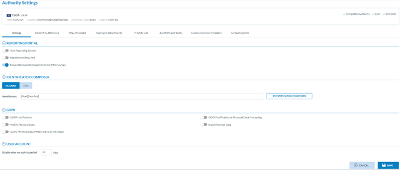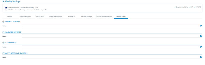 ü Own reporting system: disabled by default. It sets if the Authority has its own reporting system