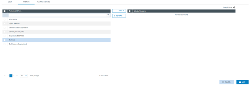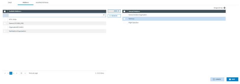 Administrators can check the needed webforms and click the ADD button in the middle of the page.