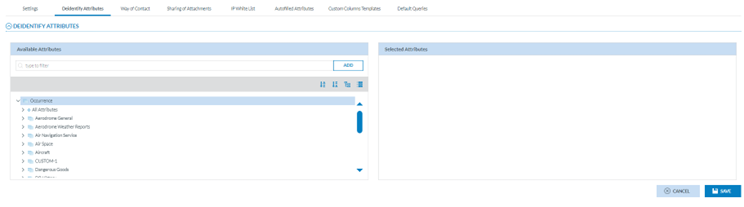 The Administrator selects the Attributes that will potentially be deidentified through this tab.