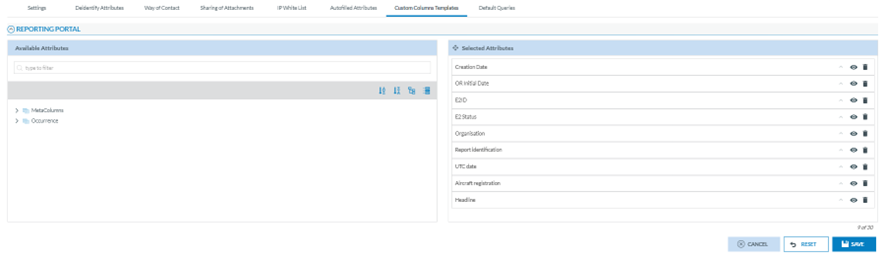 When the Administrator is updating the Attributes, before saving the updates, they can always click on the ‘Reset’ button below the list of selected Attributes so that the system will set the ‘Selected Attributes’ page to the default selection and order.