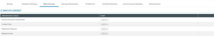 Each row presents an administrative contact and the related emails. Every time the ‘Way of Contact’ defined in this table is triggered, an email will be sent to the email addresses specified in this field. For example, if a Reporter makes a Registration Request, an email will be sent to these addresses to inform them about the new request.