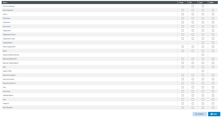 Note that there is no checkbox for some options, i.e. Create Authority Settings; Create and Edit Original Reports.