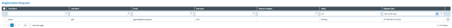 Administrators have to click on the Registration Request menu under Accounts & Permissions (Administration menu), and the system will display the table of registration requests for the specific Authority:
