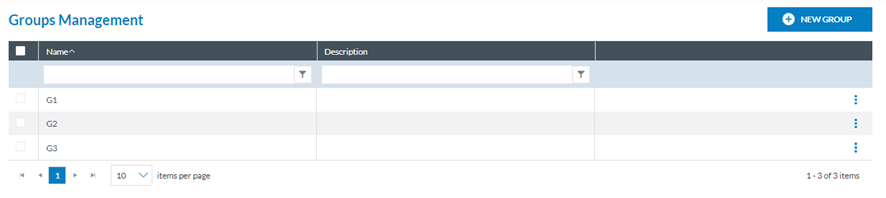 Administrators have to click on ‘Delete’ on the 3-dot menu of the specific group at the table of groups, and the system will delete the group from the database and remove it from the table of groups.