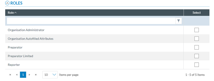 · Roles: It lists all the roles available to the Administrator. The list varies depending on the type of user. The previous image shows the roles of Individual users (non-organisational users). For Organisations, it is as follows: