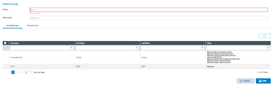 · Available Users: it displays the table of active users, excluding organisation users, of the specific Authority. They are added to the Selected Users tab by selecting the needed users through the checkboxes and transferring them to the ‘Selected Users’ tab through the ADD button. The Users can also be removed from the ‘Selected Users’ tab through the ‘Remove’ button.