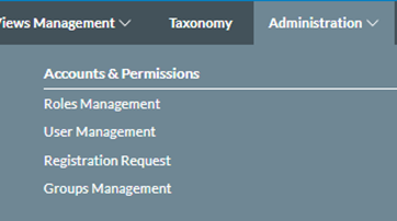Administrators have to click on Groups Management under Accounts & Permissions (Administration menu), and the system will display the Groups Management menu: