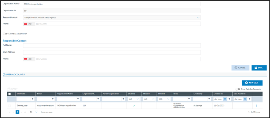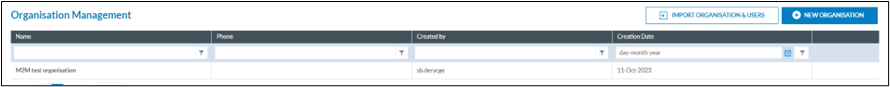 As a M2M user can only exist in an existing Organisation, the organisation is to be opened in detail