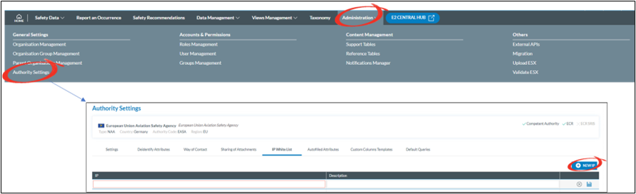5. Before access to E2 is allowed via a M2M interface, E2 is to know the IP-address(es) of the machine(s) with whom it will communicate. Here only one IP address can be added. If more than one IP address is to be added, then this is to be done via the Authority settings.