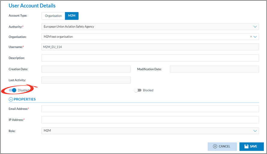 3. Is the username, the username is automatically generated by the system. It ensures that the username is unique throughout Eccairs2. As this is an automatically assigned username, that means, when creating a M2M user for the same organisation in another environment it will not be the same