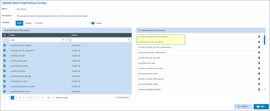 The descriptions should be concise and meaningful, as they will later serve as labels in the view (e.g., “Aircraft category missing”).