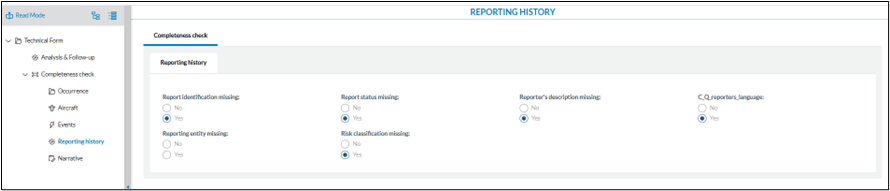 E2 does not prevent the submission of reports with missing mandatory fields. Instead, it issues a warning to the reporter at the time of submission, indicating which mandatory attributes are missing. The list of unfilled mandatory fields is not visible to the Authority’s occurrence officers responsible for processing the reports.