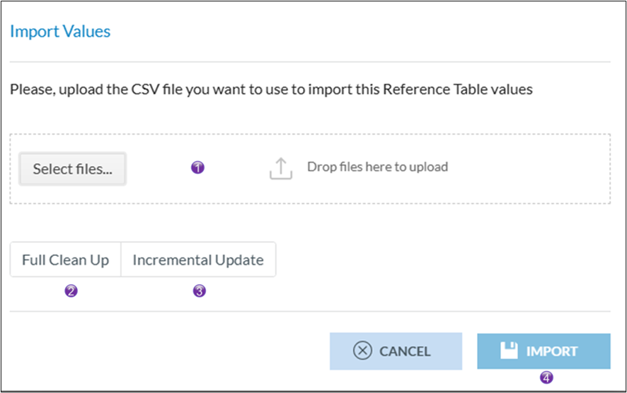 As mentioned earlier, data can only be uploaded in the RefX table using a CSV-file according to a specific template