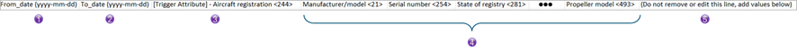 Each column header, except to and from date contain the attribute number between “<attribute>”