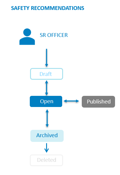 The following picture describes the lifecycle of the SR’s life from its creation to its publication, or archive and deletion.