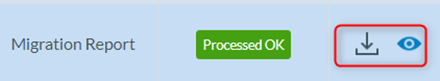 If the Officer moves the mouse over the last column of the migration row, the system will display two icons: