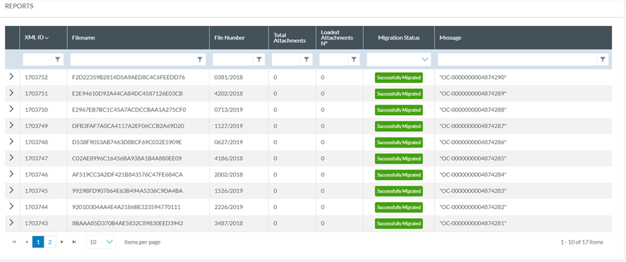 Thus, for new OCs, the system will display a message explaining the OC has been generated. (Simultaneously, the system emails the officer informing them of the migration result). Then the Officer has to click on ‘View results’. The system will display the list of migrations with the most recent on the top of the table: