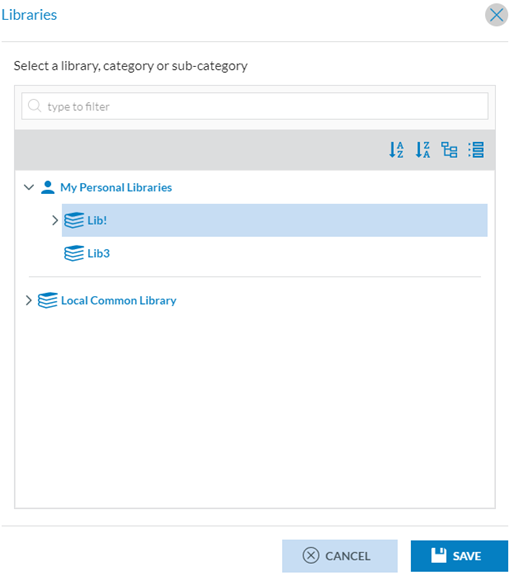 The Officer has to fill in the Name, select a Source, and select a Library through the Library ‘+’ icon that opens the Library selection page: