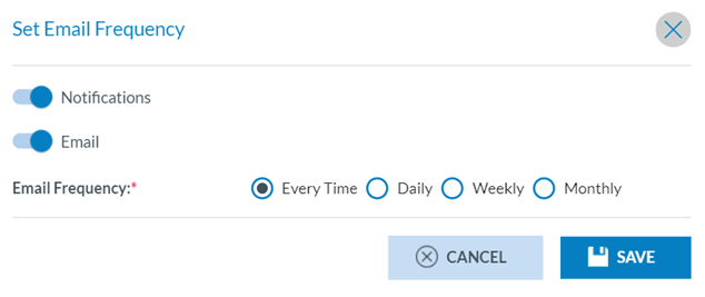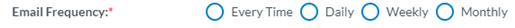 ·        Email frequency toggle can be used every time, daily, weekly, or monthly.