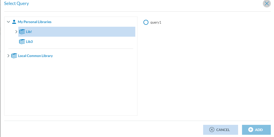 Then, the Officer has to click on the ‘+’ icon of the Query field, and the system will display the queries available for the selected library: