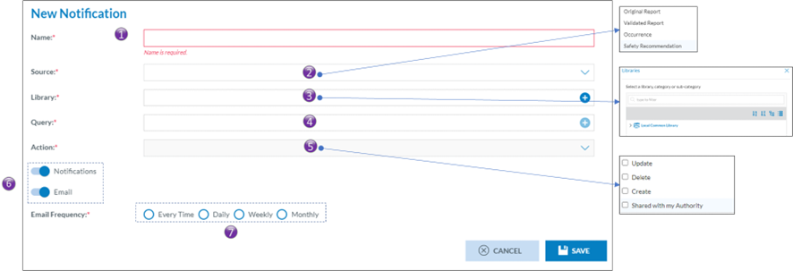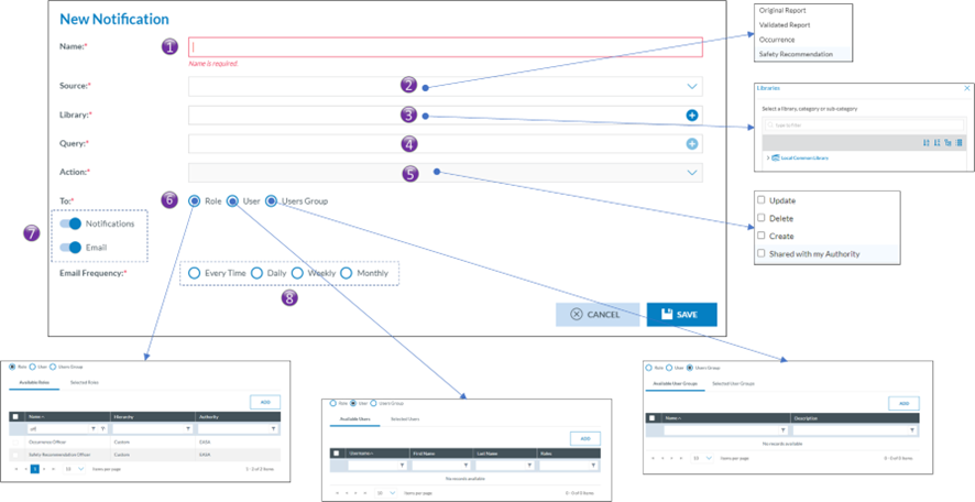 A query can be used to filter out those Occurrence Reports, Validated Reports, Occurrences or, Safety Recommendations for which the notification is to be triggered. Any query form the Local Common Library can be used