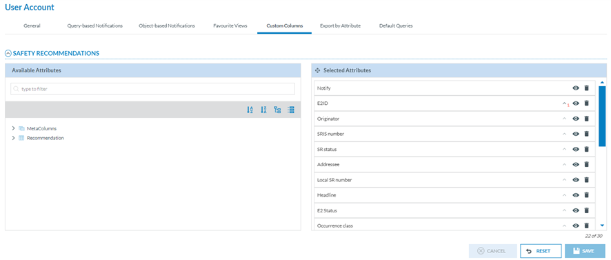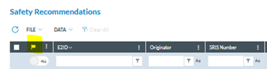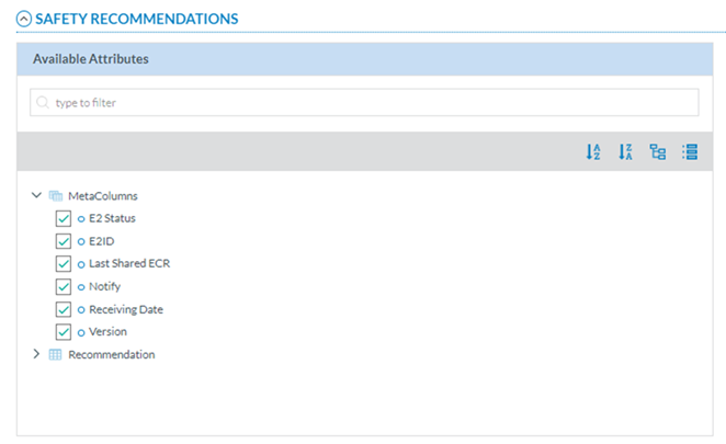 Through this page, the Officer can select the attributes available in the list of SRs in the corresponding ‘Safety Recommendations’ menu.